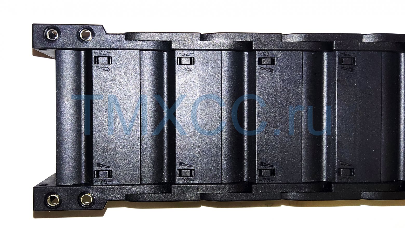 Энергоцепь TMX3050.75.55, Внутреннее сечение: 30x75 мм, Радиус: R55, закрытый, открываемый внутрь и наружу от изгиба, длина 1 метр. Комплект коннекторов (начальный и конечный держатели) прилагается бесплатно вместе с каждым каналом. Материал изготовления - высококачественный нейлон. Температурный режим эксплуатации от -30°C до 120°C. Самовывоз в день оплаты. Отправка ТК. До терминала отправки везём бесплатно.